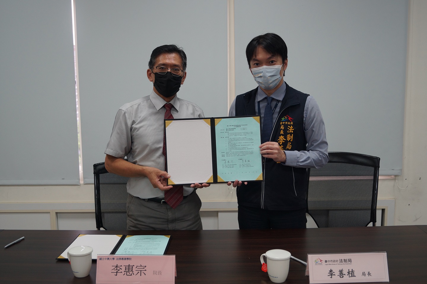 李局長指出,此次合作將延續去年MOU架構,著重雙向溝通的法學交流,法制局將安排規劃具實務經驗的法制局講師進入校園,與興大法律系學子進行法律教育研討,並將協助興大學生至公部門觀摩實習,如:法制作業流程、訴願與國家賠償實務研討、調解行政活動參與及消費者保護實務見習等行政法相關實務課程,助中興大學法律專業相關科系學生,瞭解並熟悉中市府法制局的行政法操作應用實務經驗。