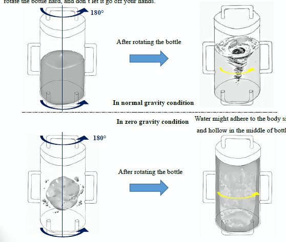 蔡志群預測,如果一個圓柱形瓶子在無重力環境中繞其縱軸旋轉,旋轉後只會產生向心力,水會黏在瓶子的側面,形成中空狀態。另一個預測是如果在太空中將瓶子繞其橫軸旋轉,水會瞬間聚集在瓶子兩端。實驗計畫也包含觀察停止旋轉後的液體狀態。