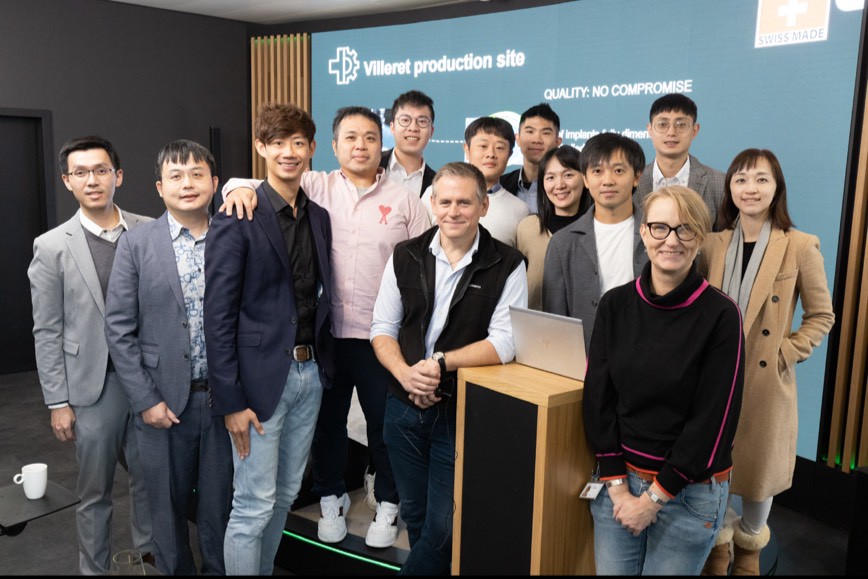行程首站來到瑞士醫療重鎮巴塞爾。此地聚集了羅氏、諾華等頂尖藥廠,深厚的精密工業底蘊,形塑了「瑞士製造」在醫材領域的卓越標準。在士卓曼品管主管帶領下,蒔美團隊深入植體製造核心,實地視察從原料處理、精密加工到表面處理的每一道嚴苛工序。