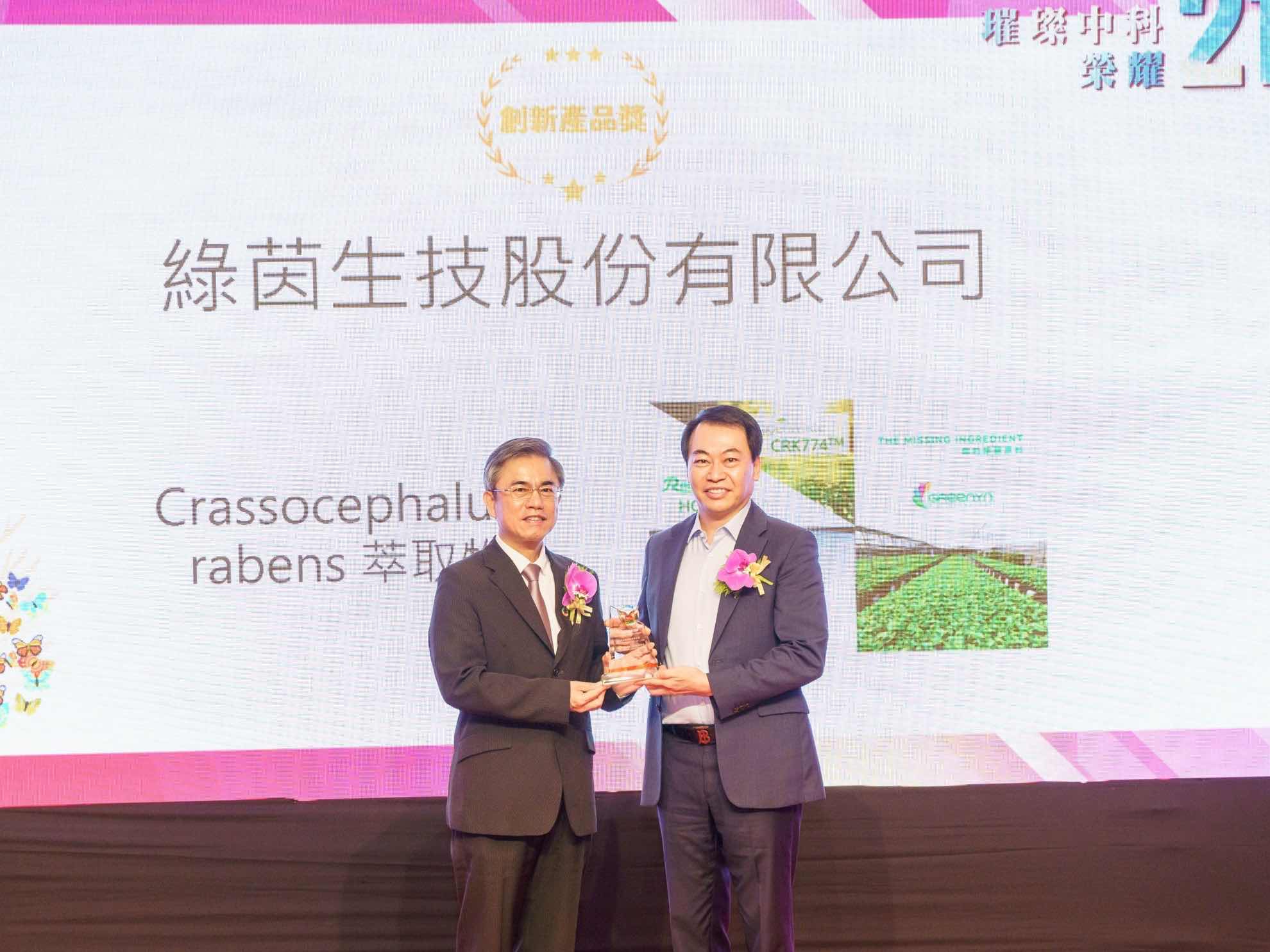 綠茵生技股份有限公司在眾多競爭者中脫穎而出,憑藉其突破性的產品—Crassocephalum rabens萃取物榮獲殊榮。該產品採用創新策略突破農業技術門檻,通過科學化種植技術使產出的指標成分含量提升,高達到野生種的11倍,安定性同時增加了2倍以上;低碳萃取製程技術的導入,衍生出兩項品牌原料(RabenWhite® CRK774®及RabenLiv® HCP774®)已在國際舞台上嶄露頭角,成功創造出符合中科競賽要求的創新、技術和競爭力等優異產品。