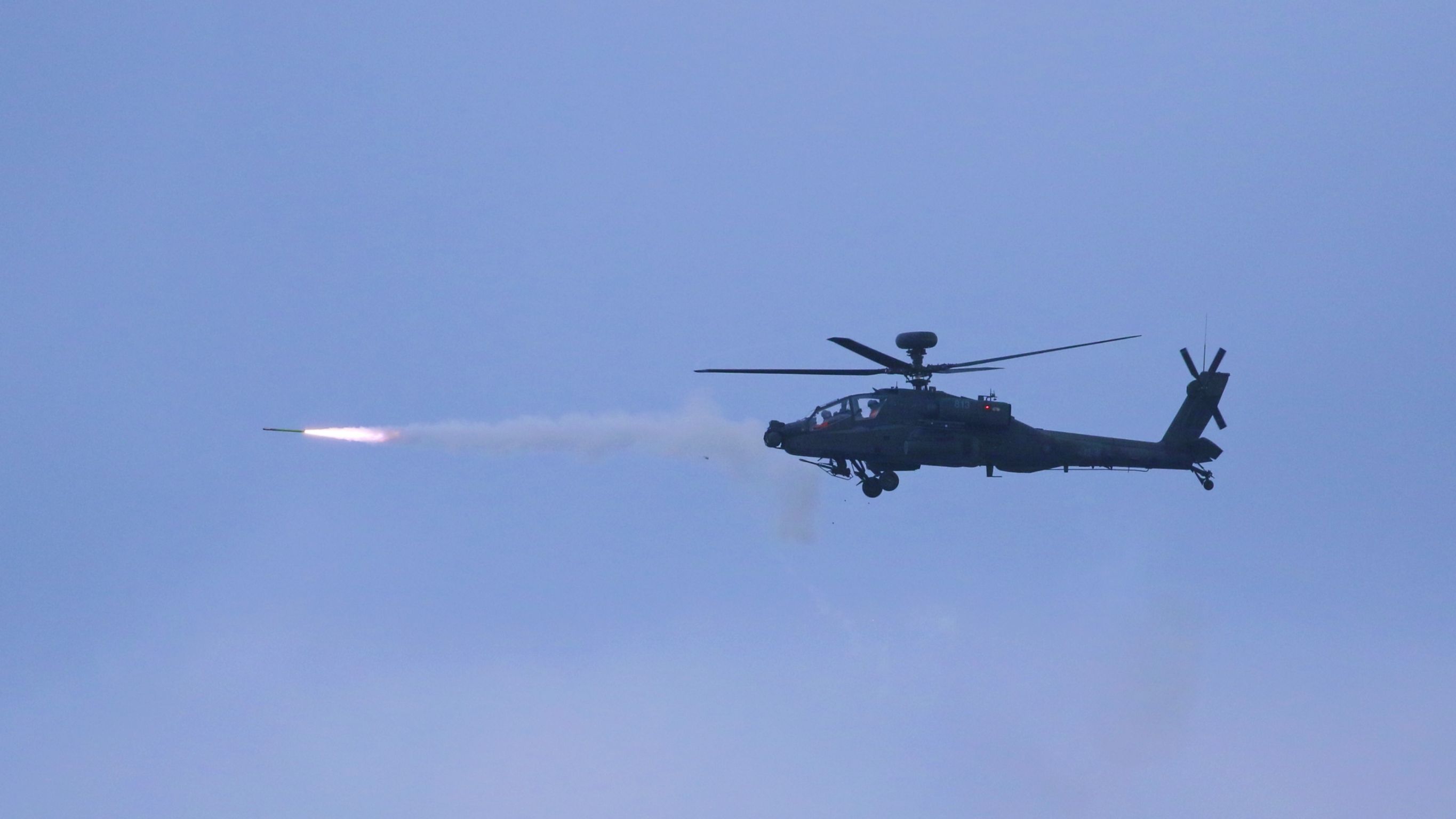 ▲「神鷹操演」精準飛彈射擊,AH-64E阿帕契攻擊直升機發射刺針飛彈。(圖/記者莊全成攝)