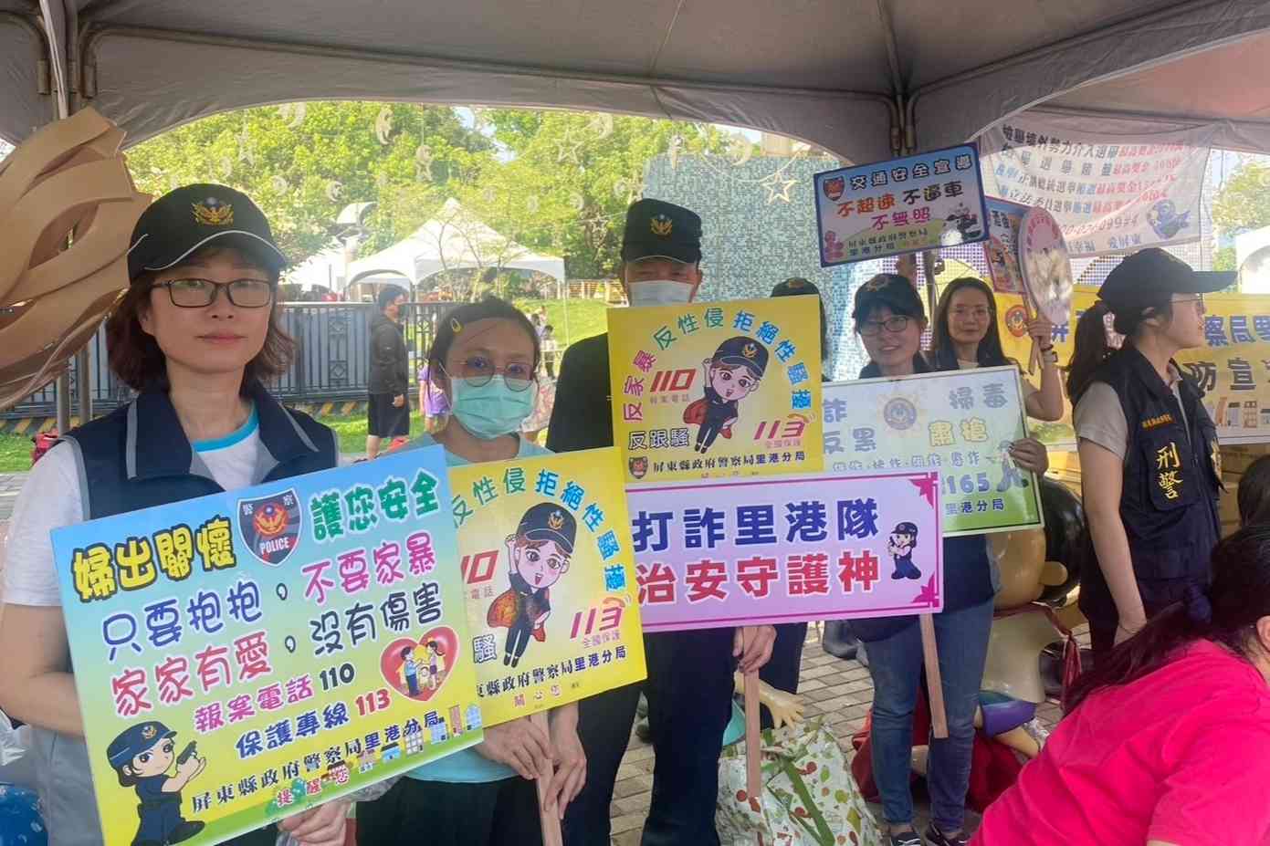 兒童節連假,里港警察分局派出聯合宣導團進行犯罪預防宣導,前往里港鄉公所舉辦的2024兒童節暨珍愛水資源宣導活動。活動中,進行了反毒、防詐、交通安全及婦幼安全等各類宣導,提醒在場鄉親務必小心現今最新的AI深偽技術詐騙手法,並教授孩童們自我保護方法及交通安全守則。