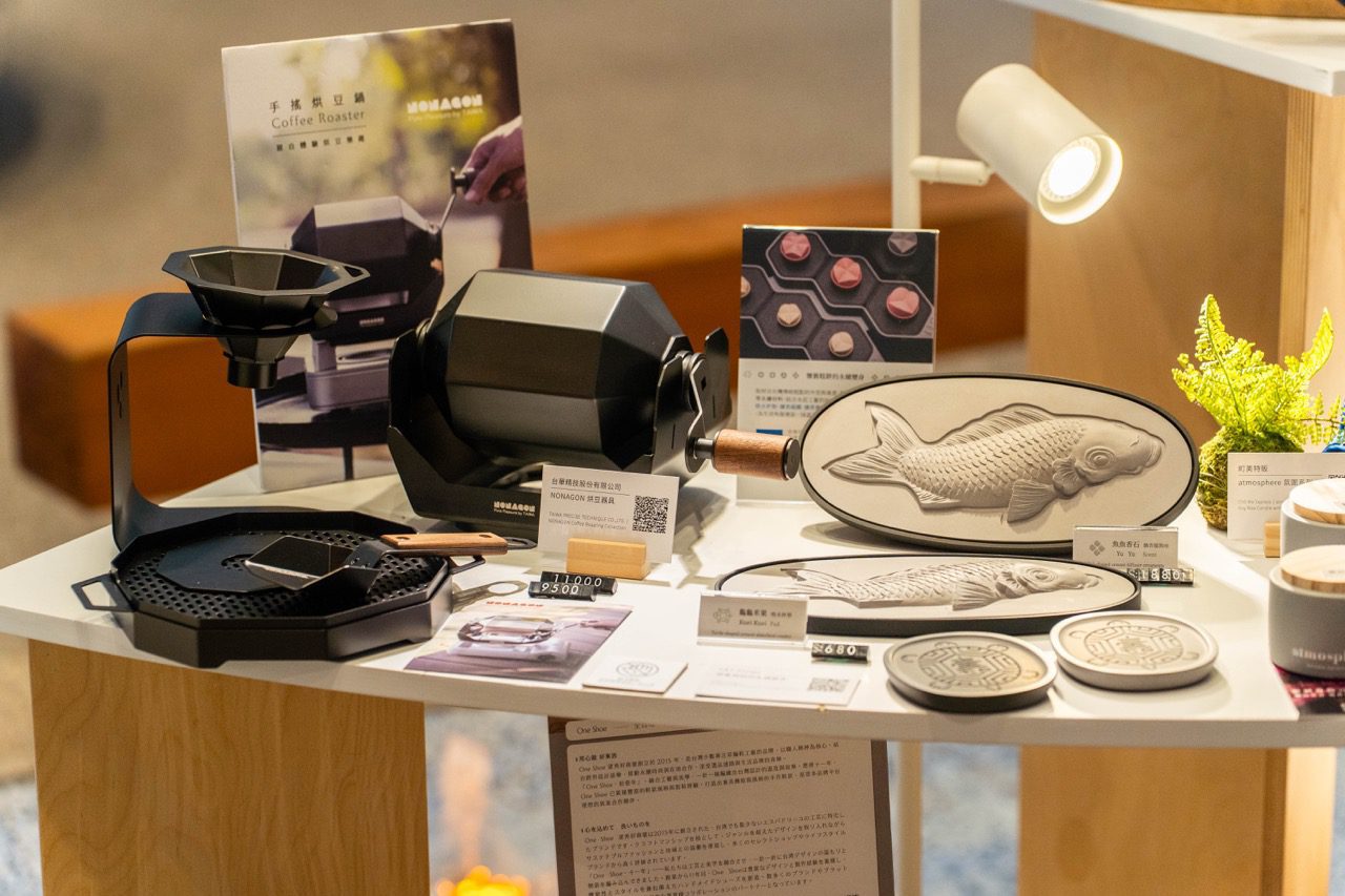 文化局表示,這次展售作品橫跨工藝品、視覺及包裝設計與創意生活類,兼具創意設計與實用價值。其中,以台灣膠彩之父林之助名作《春意》為靈感打造的「有田燒筷架禮盒組」,不僅獲得TCOD台中原創工藝品類肯定,更榮獲英國Future Art & Design Award UK殊榮;創意生活類LIMore樂思摩「時光跡」,將傳統信仰元素融入無穿心針時鐘設計,獲德國iF Design Award設計獎肯定。另由台中精密板金加工大廠「台華精技」推出的設計品牌《NONAGON烘豆器具》,隨市府觀光推廣團赴韓參展,展現台中原創邁向國際的實力。
