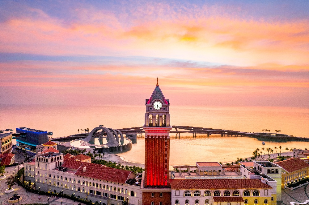 其次是豐富的拍照與體驗場景。日落小鎮(Sunset Town)融合義大利阿瑪菲海岸般的歐風街景,擁有「龍梯」(Dragon Staircase)、「鉛筆塔」(Pencil Tower),以及靈感源自牛郎織女傳說、全球唯一的「接吻橋」(Kiss Bridge)。這裡還有全球最長的三索跨海纜車與榮獲世界紀錄的多媒體表演《海之吻》(Kiss of the Sea),而最令人驚喜的是,這座小鎮一年 365 天皆有煙火秀,成為浪漫的代名詞。