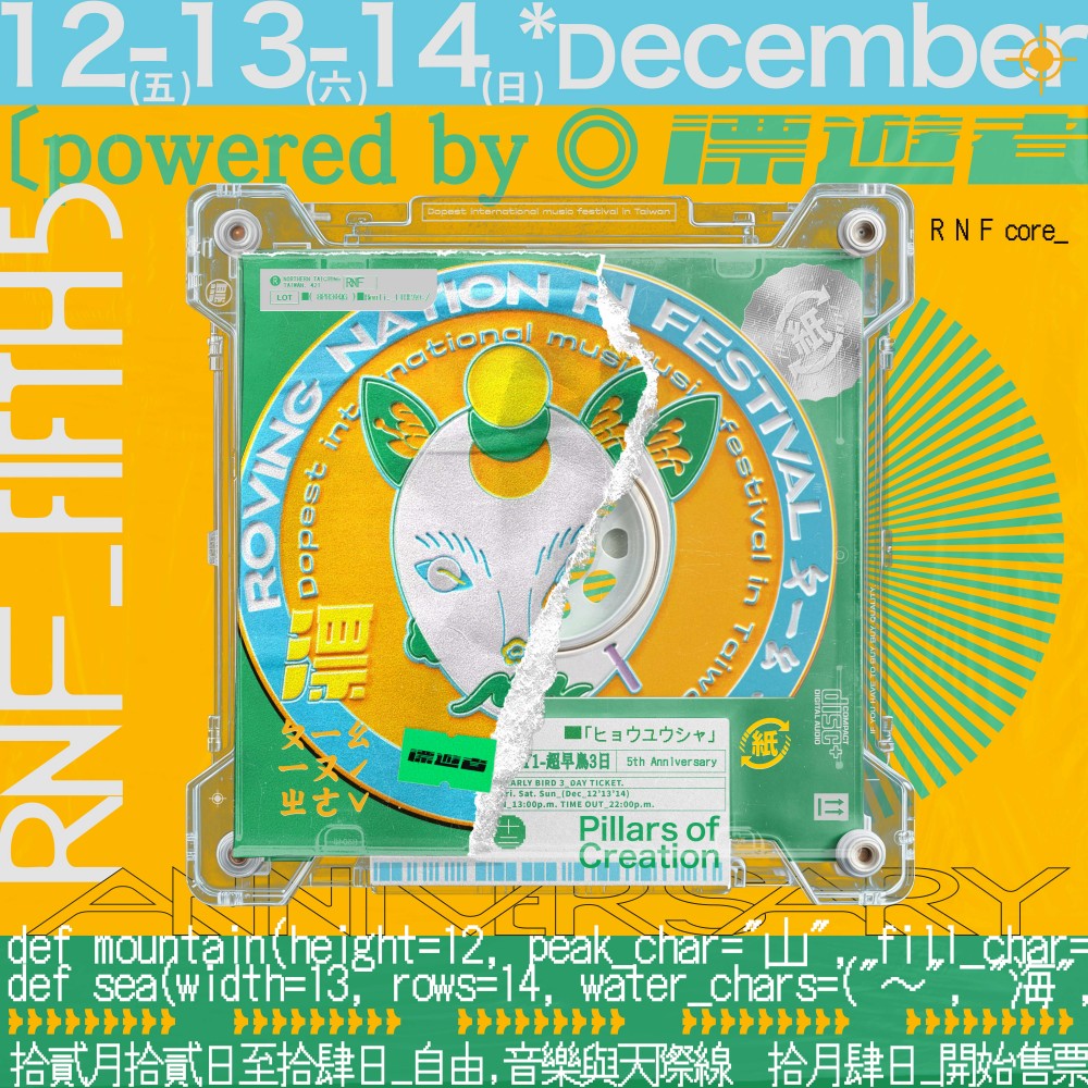 邁入五週年的「Roving Nation Festival 2025 漂遊者森林音樂祭」將於 12月12日至14日在臺中麗寶落羽松草原舉行,陪伴你們暫離喧囂,回到音樂與風的懷抱。三天三夜、萬坪草原,從塵埃到星辰,野營、市集、運動與藝術裝置,將再度掀起冬季最魔幻的音樂浪潮。
