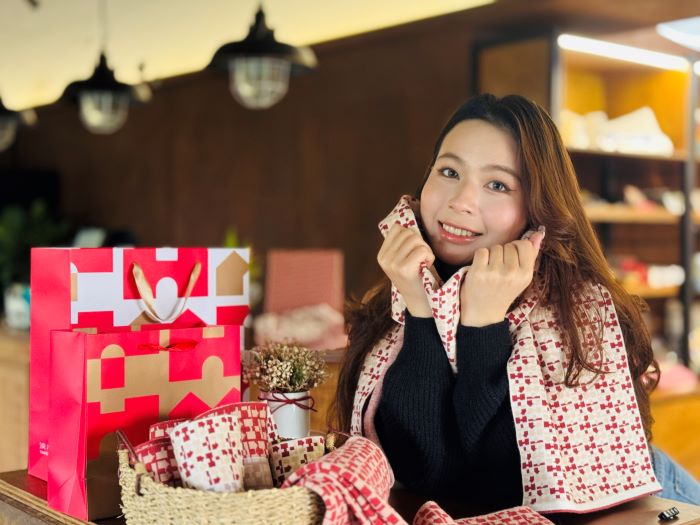 蔡美治表示,為慶祝開幕並迎接農曆年節,淡水古蹟博物館攜手實踐大學設計學院,推出限量款品牌圍巾,圖樣以淡古全新識別「THM」為主軸,採雙面異色織法,兼具保暖與設計感,2月22日前每條特價799元。新北市長侯友宜日前亦於跨河煙火活動中配戴亮相,吸引民眾關注。
