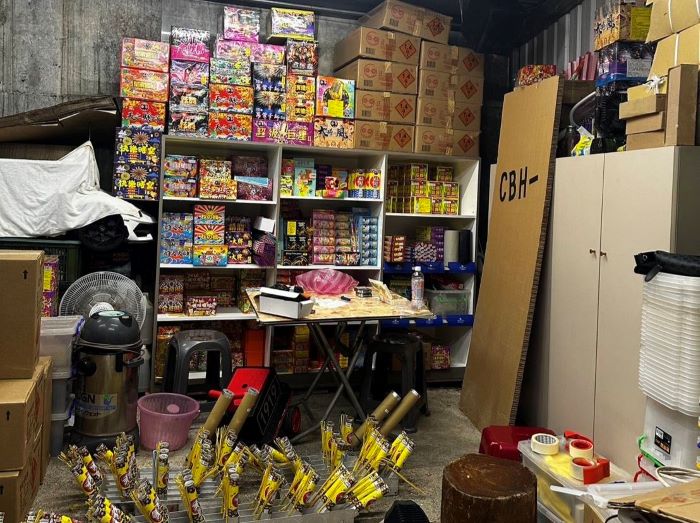 【記者葉柏成/新北報導】新北境內近三年內之最!新北市消防局日前接獲民眾舉報,指稱萬里區一處鐵皮建築倉庫內疑似製造爆竹煙火,恐有安全之虞,於現場查獲逾1700公斤各式爆竹煙火,含疑似專業爆竹煙火及未張貼認可標示的煙火產品,依違反爆竹煙火管理條例規定,取締查扣併全數沒入,並依爆竹煙火管理條例開立舉發單,依法開罰最高新臺幣150萬元。