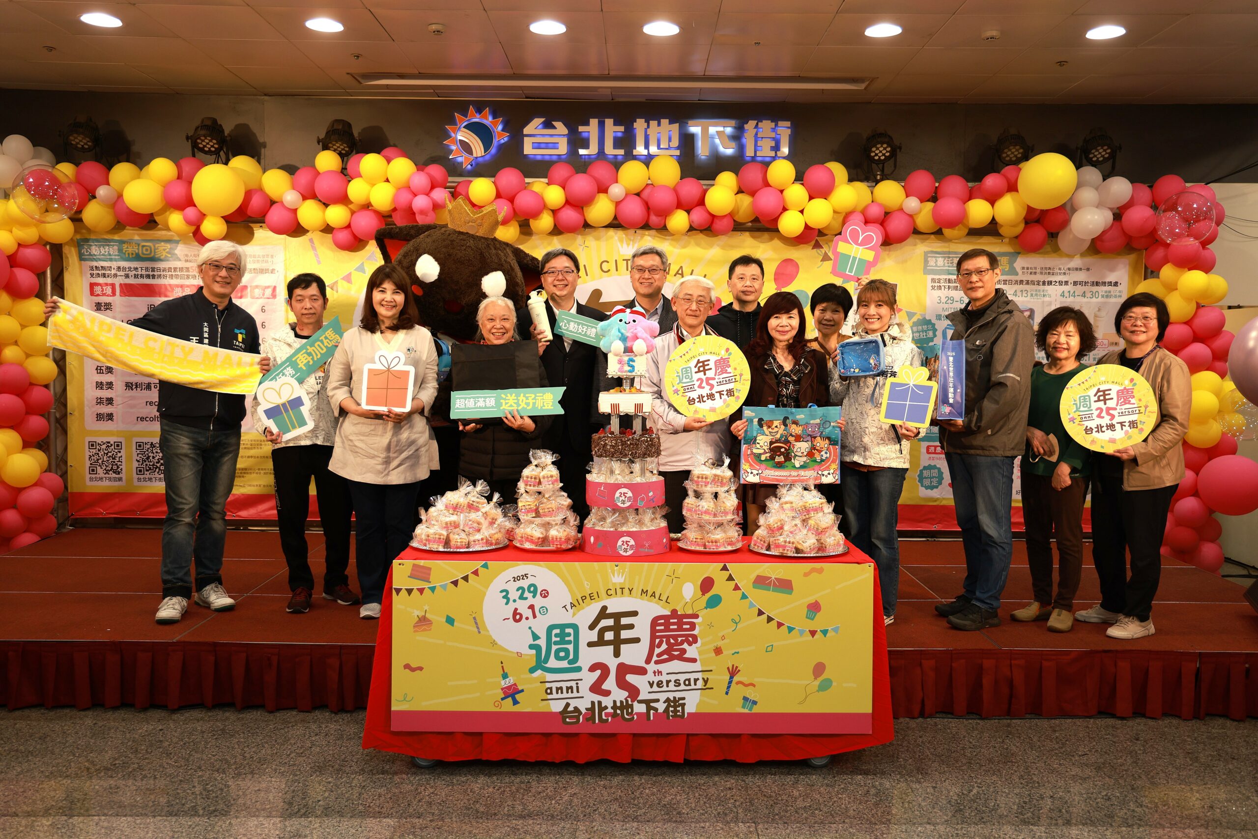 台北地下街25週年慶開跑!29日下午在台北地下街12號廣場舉辦特別慶祝活動,除了迎接台北地下街邁入第二十五年,也在Y7出入口舉辦「Y7、Y9、Y11出入口美化工程」完工啟用慶祝儀式,台北地下街劉育豪理事主席表示特別感謝顏若芳議員協助爭取工程預算補助,也感謝臺北市政府的鼎力支持,台北地下街也會持續努力推動街區特色、促進文化交流,歡迎市民朋友假日遊憩首選台北地下街。