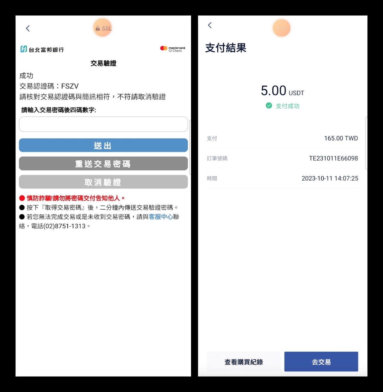 輸入「Visa/Mastercard」卡片資訊(卡號、有效日期、安全碼),並輸入USDT的購買數量。確認需要支付的金額後,點擊下方「0手續費購買」。