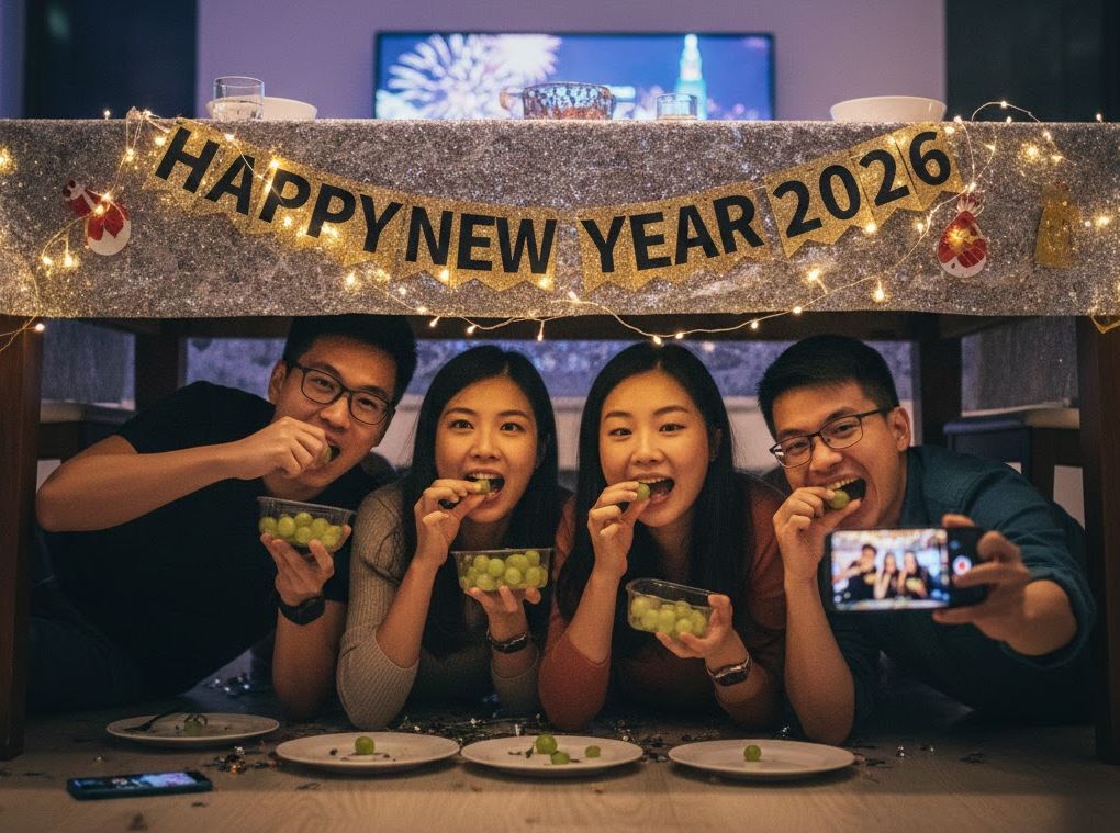 這項儀式具備極高的「視覺張力」。躲在桌下狼狽吃葡萄的畫面具有強烈的反差感與幽默感。根據 Jonah Berger 在《瘋潮》(Contagious)一書中的理論,這類具備自嘲性質且易於模仿(Low Barrier to Entry)的行為,是完美的社群貨幣,能讓分享者顯得幽默且跟得上趨勢。