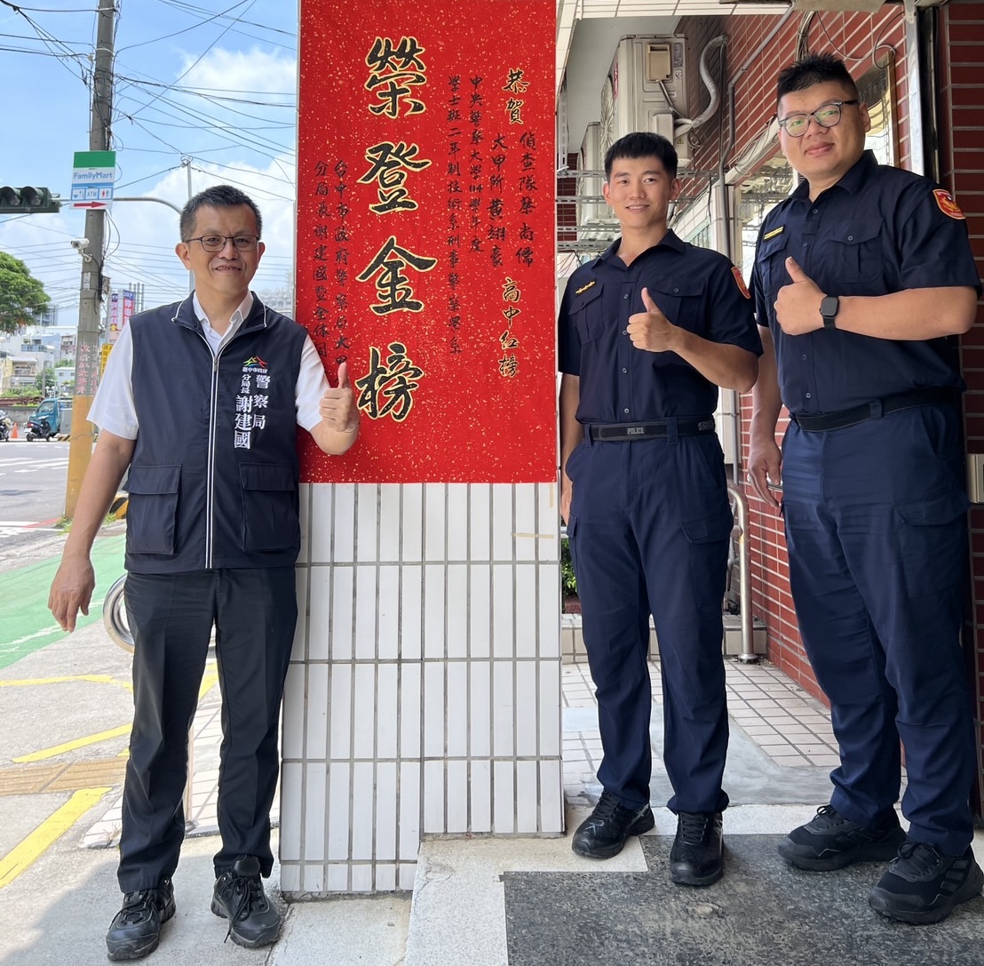 臺中市政府警察局大甲分局分局長謝建國表示,大甲警分局同仁日常認真投入治安與交通維護工作,能在勤餘持續深造、榮登警大榜單,足證同仁自我成長不懈,也象徵大甲警分局在人才培育上的深耕成果。他期勉兩位同仁在未來學習路上持續精進、學以致用,成為守護社會安全的優秀中堅。
