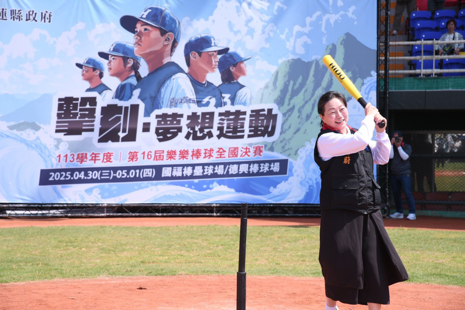 由教育部體育署主辦「113學年度國中小學生普及化運動-5、6年級樂樂棒球全國決賽」,今天起2天在花蓮縣立棒球場熱鬧展開,花蓮縣長徐榛蔚開球勉勵全體選手秉持運動家精神,以球會友。