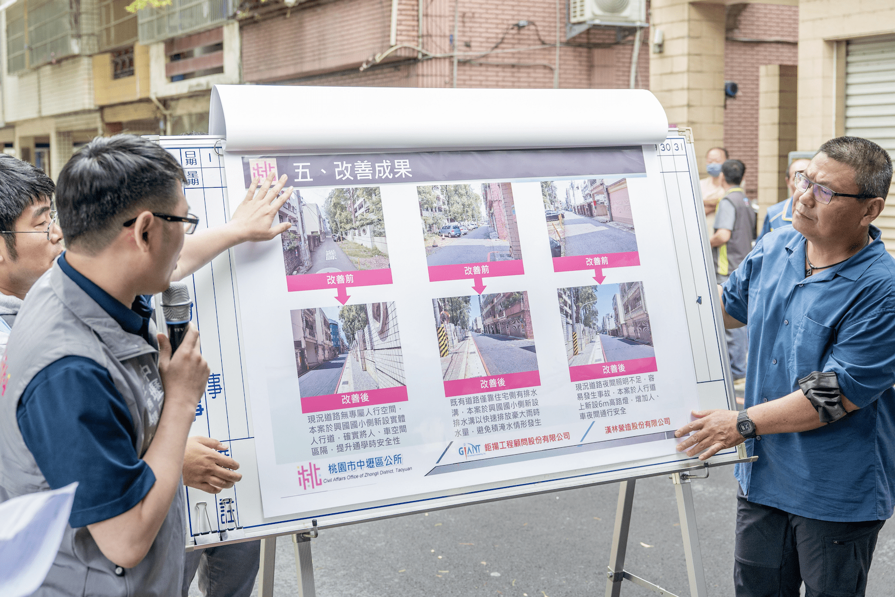 中壢區公所表示,本工程屬「中壢平鎮都市計畫」之8公尺寬都市計畫道路,全長148公尺,原有道路寬度不足4.5公尺,透過本工程拓增路幅、增加車行空間,同時協調台電公司遷移3支電桿,並設置實體人行道與行人穿越線、新設排水溝強化區域排水功能,以及增設路燈提升人、車夜間通行安全。