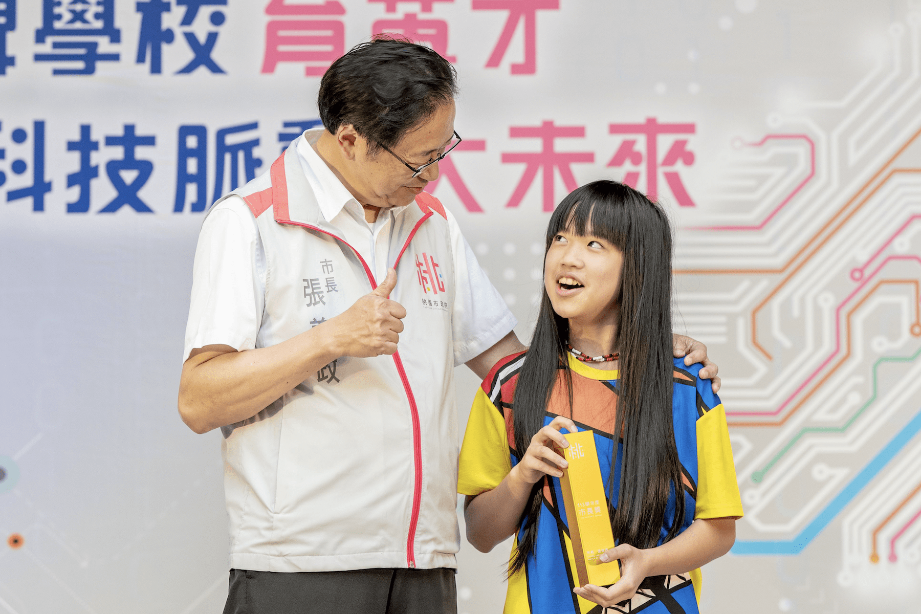 張善政提到,小學六年學習之路即將告一段落,市長獎是每班僅一位的至高榮譽,在人生的第一個求學階段就拿下這樣的榮譽,代表能力達一定水準,值得驕傲。活動上,張善政親自逐一頒獎予約900位獲獎學生,並祝福每個學子在成長的路上鵬程萬里、一帆風順。