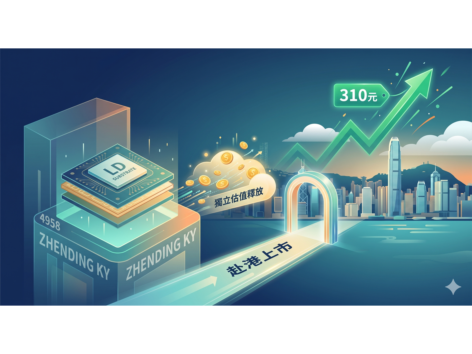 目標區已成歷史!本刊4/8報導時臻鼎-KY(4958)盤中剛攻上247.5元,原設定中線目標260至270元整數關卡,如今短短八個交易日股價在4/20盤中直衝310元漲停、再創掛牌天價,成交量45,354張更超越4/17全日量,屬於標準放量突破。推升這一波的不是單純追漲,而是兩個具體新催化劑接連落地4/17董事會通過高階IC載板子公司「禮鼎半導體科技(深圳)」規劃赴香港聯交所上市,公司明確表示此舉是為了獨立釋放高成長業務估值;同一天公告子公司近一年取得機器設備約15.21億元,印證800億元資本支出不只是口號,已持續轉化為實體產能投入。理周投研部認為,臻鼎AI伺服器、光通訊、IC載板三箭主軸不僅沒有被推翻,反而被後續數字與公司行動持續強化;但股價高斜率加速後近五日法人實際偏賣,籌碼屬「價格領先籌碼」型態,短線操作須嚴守關鍵支撐。