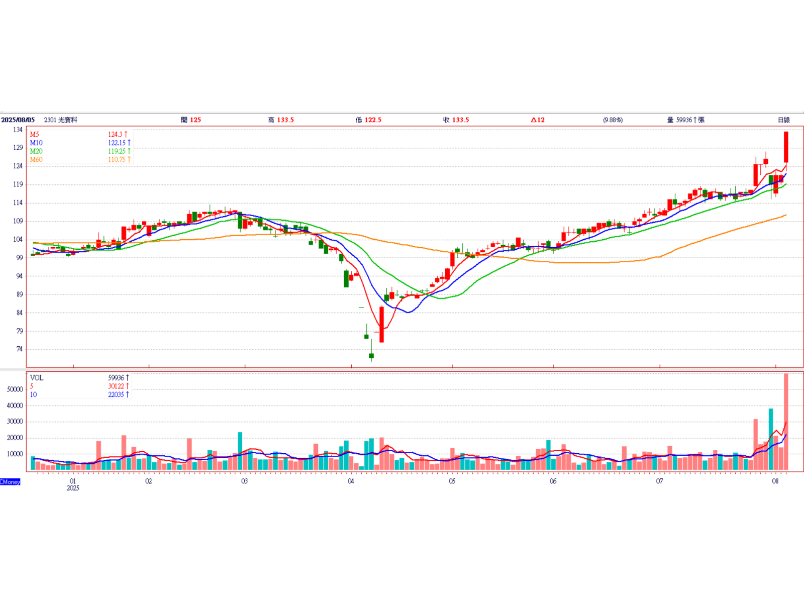 為提高運算能力,輝達宣佈AI伺服器晶片輸出電壓從目前的54V大幅拉高至800V,光寶科與台達電入列,站穩伺服器電源供應鏈龍頭地位。理周投研部表示,兩檔股價技術線型類似,光寶科從5月9日站上百元後即穩定沿20線上盤攻;而台達電則在6月23日站上400元後沿20線攻漲至600元,只要多頭排列不變,仍有上攻機會。