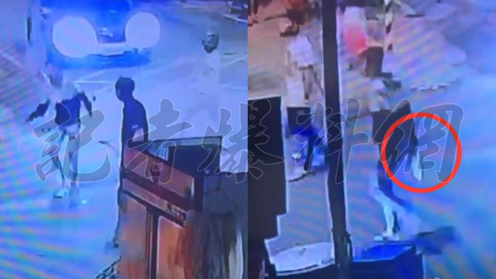 高雄鳳山新國街、新泰街昨(13)日晚間10時許發生一起糾紛事件,2名男子之間有感情糾紛,雙方約在新強公園談判,未料其中一方烙人,最後場面形成1打3的局面,而對方人多,其中2名共犯還拿著長水果刀,不斷追砍另一名男子,畫面曝光相當驚悚。