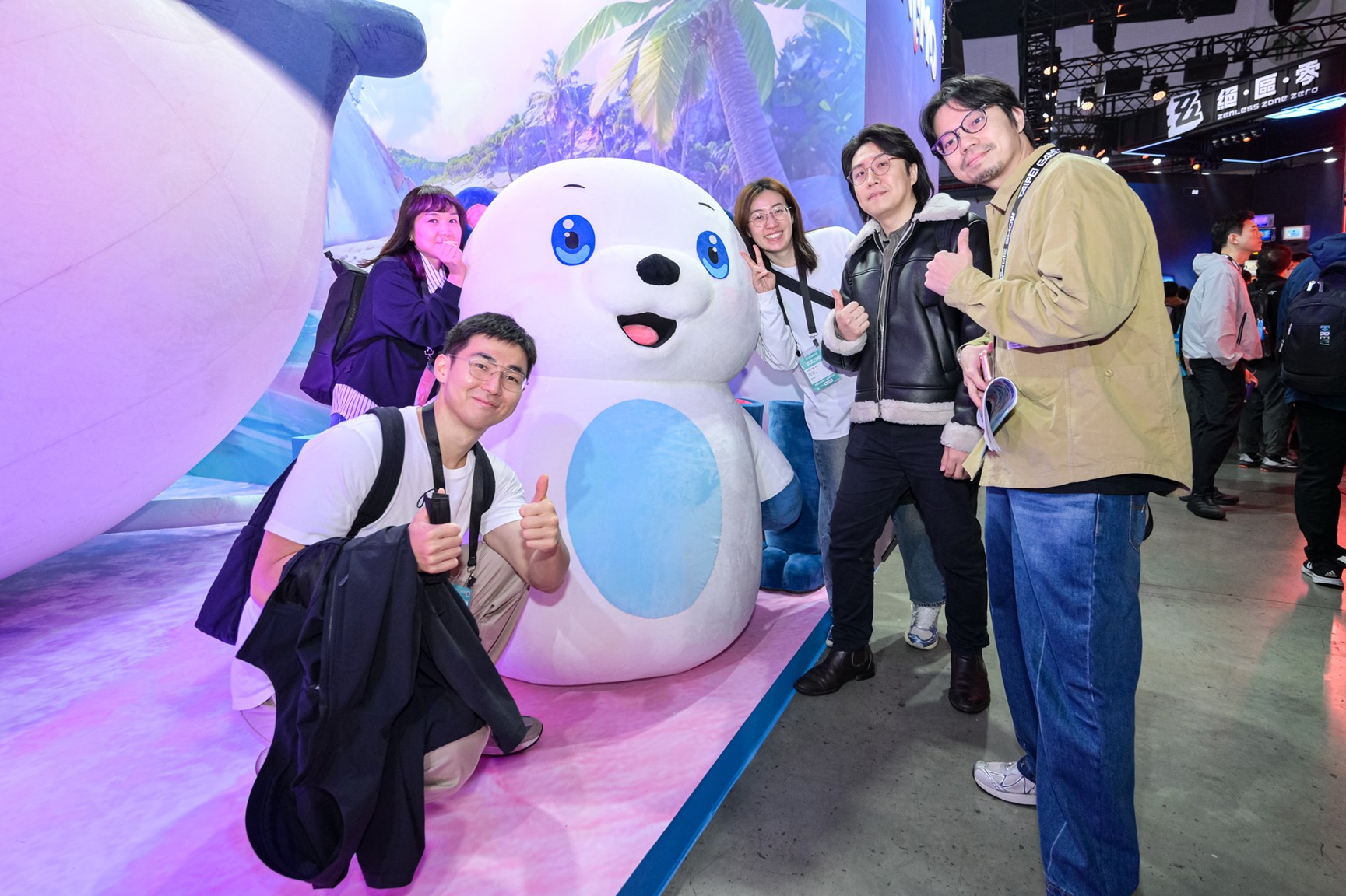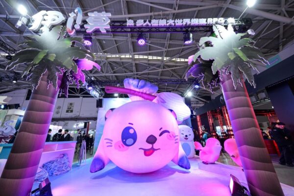 伊莫(Aniimo)以充滿想像力的奇幻世界觀為核心,結合可愛卻富有生命力的生物角色設定,主打玩家可在遼闊開放世界中探索、戰鬥與蒐集,並透過角色培養與互動,打造屬於自己的冒險旅程。從現場側拍畫面可見,展攤中央設置了高達數公尺的伊莫角色氣偶,搭配燈光舞台與動態展示,成功營造出宛如走進遊戲世界的沉浸式氛圍。