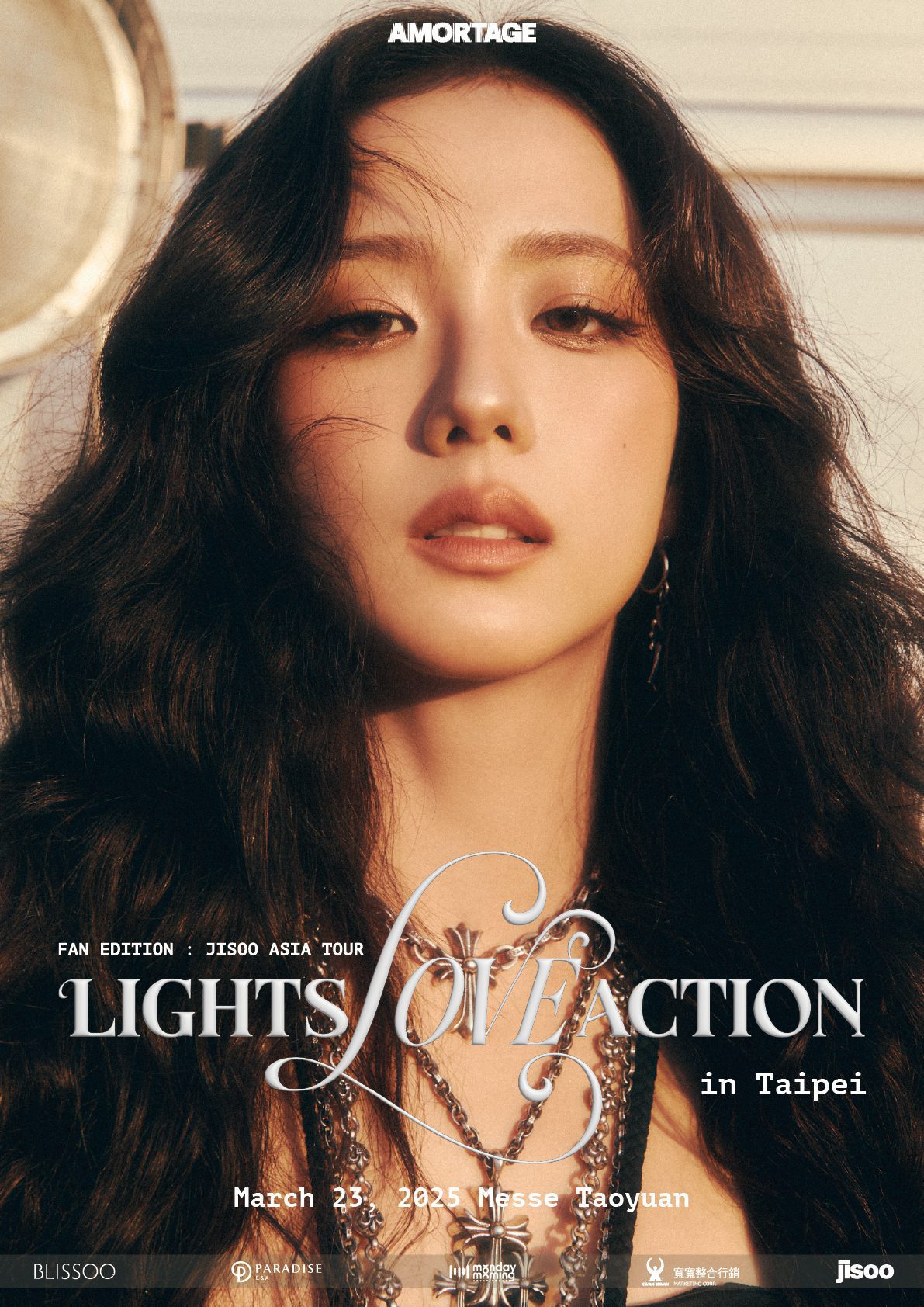 《2025 JISOO ASIA TOUR : “LIGHTS, LOVE, ACTION!” IN TAIPEI》台灣主辦單位寬寬整合行銷表示,本次JISOO個人粉絲見面會將於亞洲進行巡迴,作為紀念專輯發行並相映了專輯的概念,以電影般的演出和構成進行裝飾。根據各收錄曲的氛圍,JISOO團隊準備了豐富多彩的環節,將給粉絲們帶來彷彿觀賞一部電影般的特別體驗。