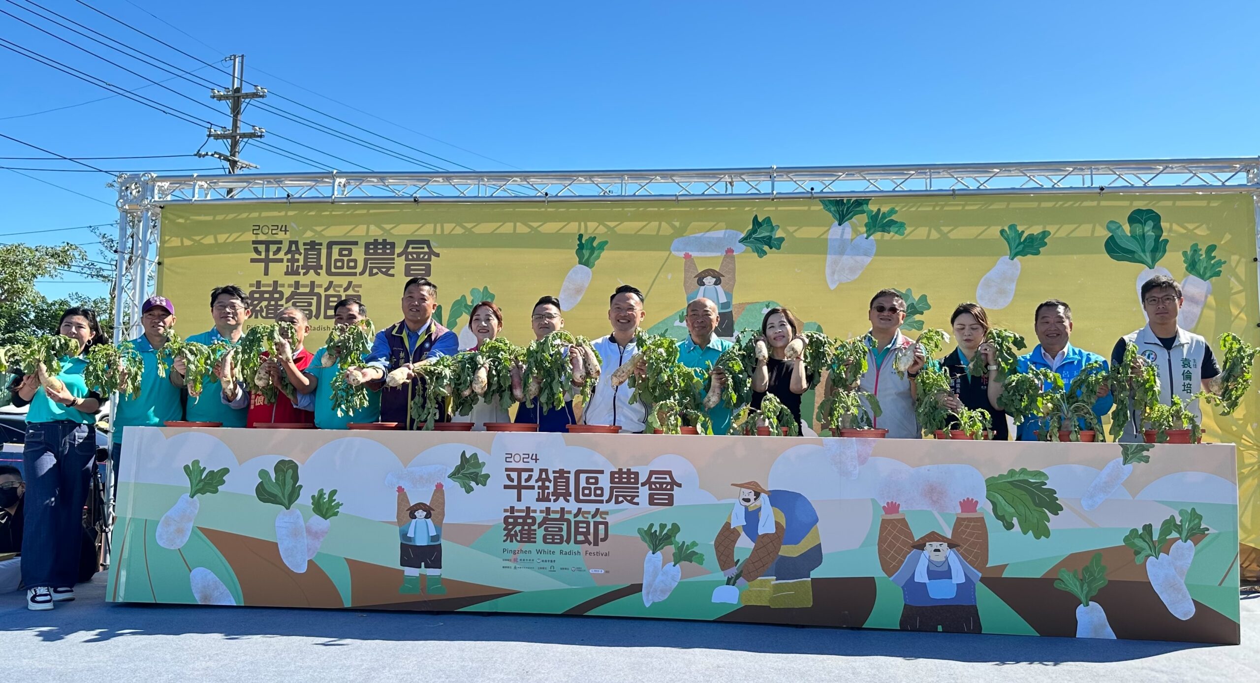 農業局長陳冠義說,平鎮區農會每年都會辦理在地特色農產推廣活動,去年辦理「2023世芥客家菜-千人踩酸菜活動」,今年則是以「蘿蔔」為主題辦理「2024平鎮區農會蘿蔔節」,期待透過不同推廣活動結合客家文化打造平鎮一區一特色,未來也請農會持續辦理,期待食農教育理念結合客家文化,達到凝聚與傳承的效益。