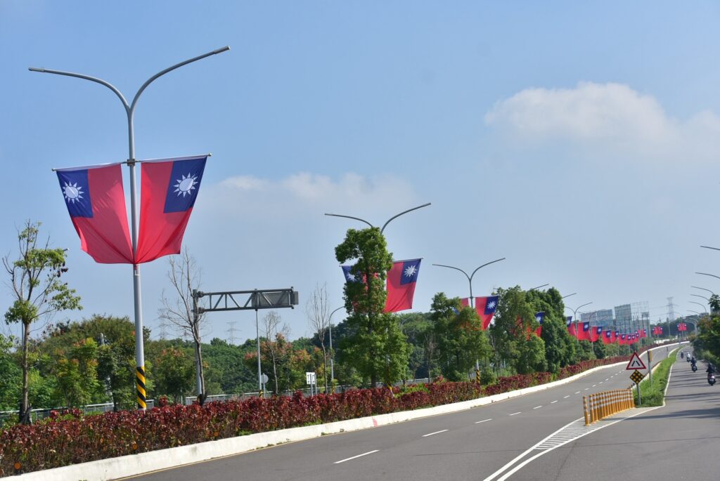 陳大田指出,最特別是在西屯路四段 (都會南街至橋樑段)最佳視野路段,懸掛20組大型直式國旗,遠觀氣勢雄偉、近看莊嚴典雅,成為道路景觀新亮點;而台灣大道與文心路則以羅馬旗整齊排列,彷彿盛大迎賓大道。