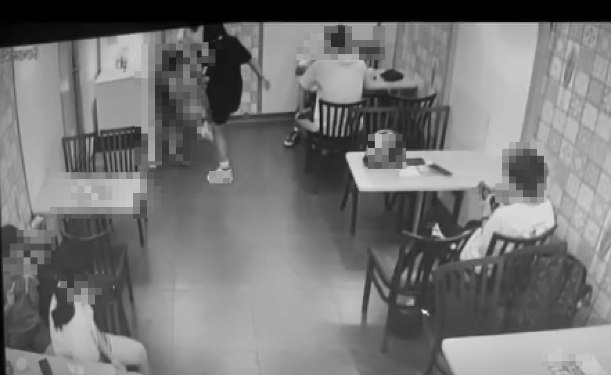 沒想到後來男童去上廁所,回來後發現他的玩具都不見了,接著就看到其中一個玩具(鋼鐵人頭盔)在國中生桌上,男童要去拿回來,其中一名國中生就問男童可不可以也借他們玩具,但男童拒絕說不要,沒想到這群國中生就開始用各種方式欺負男童,畫面中兩名分別身穿白衣和黑依女生不斷對男童拉扯,還一旦把男童逼到牆角,再拳打腳踢。