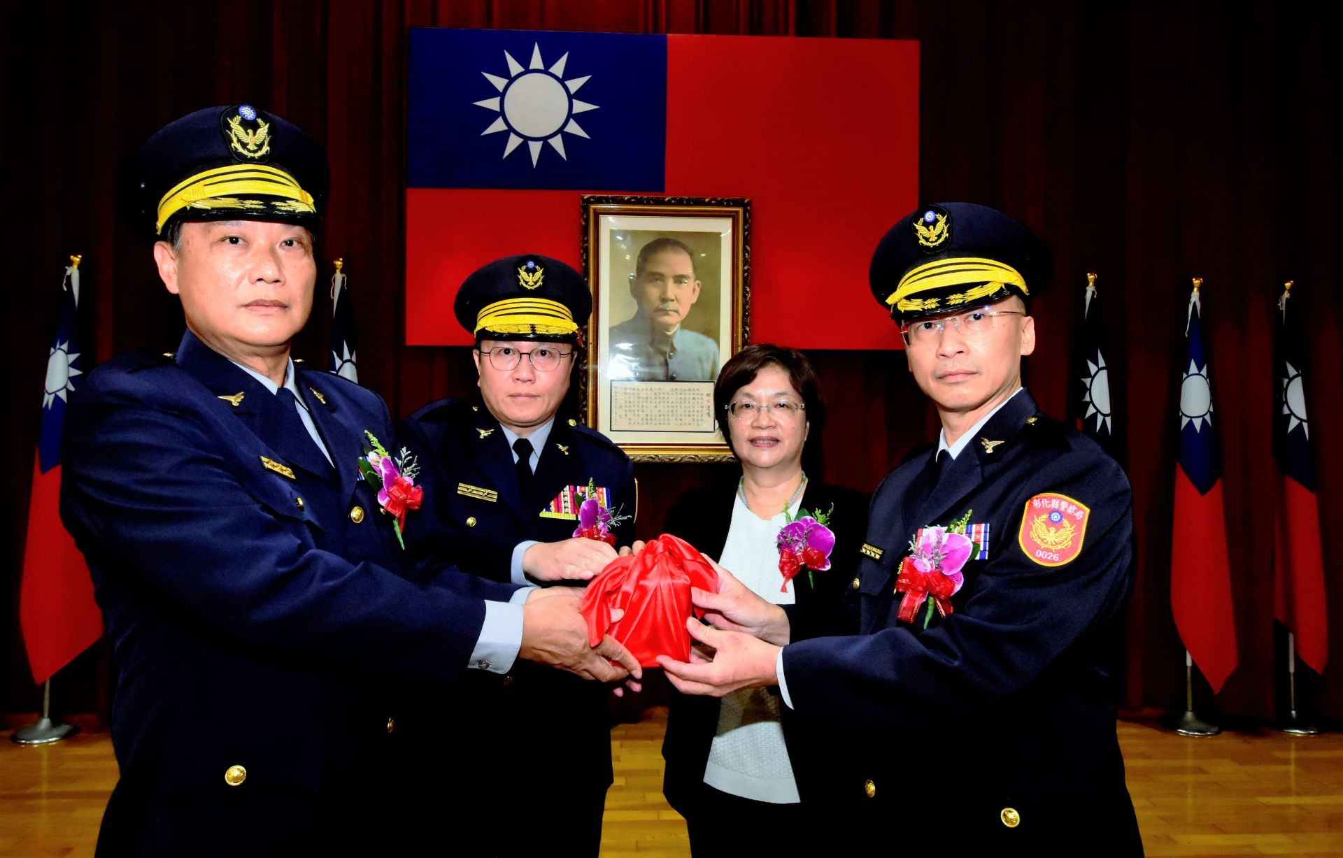 員林及和美分局新、卸任分局長聯合交接典禮,8日在彰化縣警局舉行。王惠美縣長感謝警察局長陳明君帶領所有同仁,為彰化的治安、交通不斷努力,也恭喜警察局主任秘書程純濱榮調臺南市政府警察局督察,且由保安警察第七總隊督察長廖志明調任彰化縣警察局主任秘書;另外員林分局長吳詠傑榮調新竹縣政府警察局主任秘書,和美分局長洪再德調任員林分局長;和美分局長則由嘉義縣警察局布袋分局長吳永森接任,特別感謝榮陞外調的程純濱主任秘書及員林分局吳詠傑分局長,在彰化縣服務期間任勞任怨,展現良好工作績效。