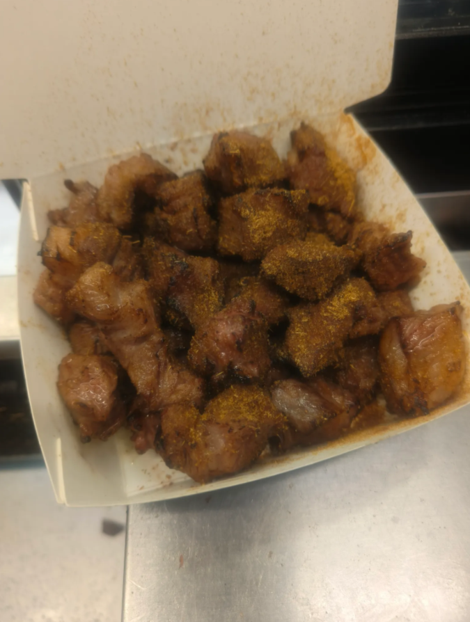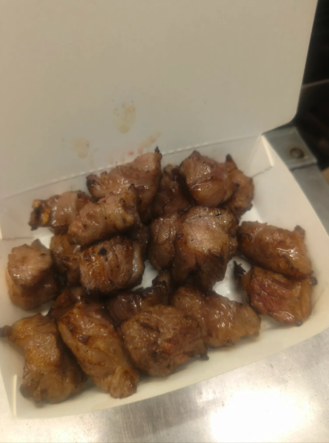 網友在Threads發文指出,在六合夜市買骰子牛,5塊100,並且PO出照片。結果吸引老闆來留言,表示早早就告知100元是60公克1串,200元是160公克,300元是240公克,要去警察局備案,因為有把份量給顧客看,顧客同意才烤的,並沒有亂賣。