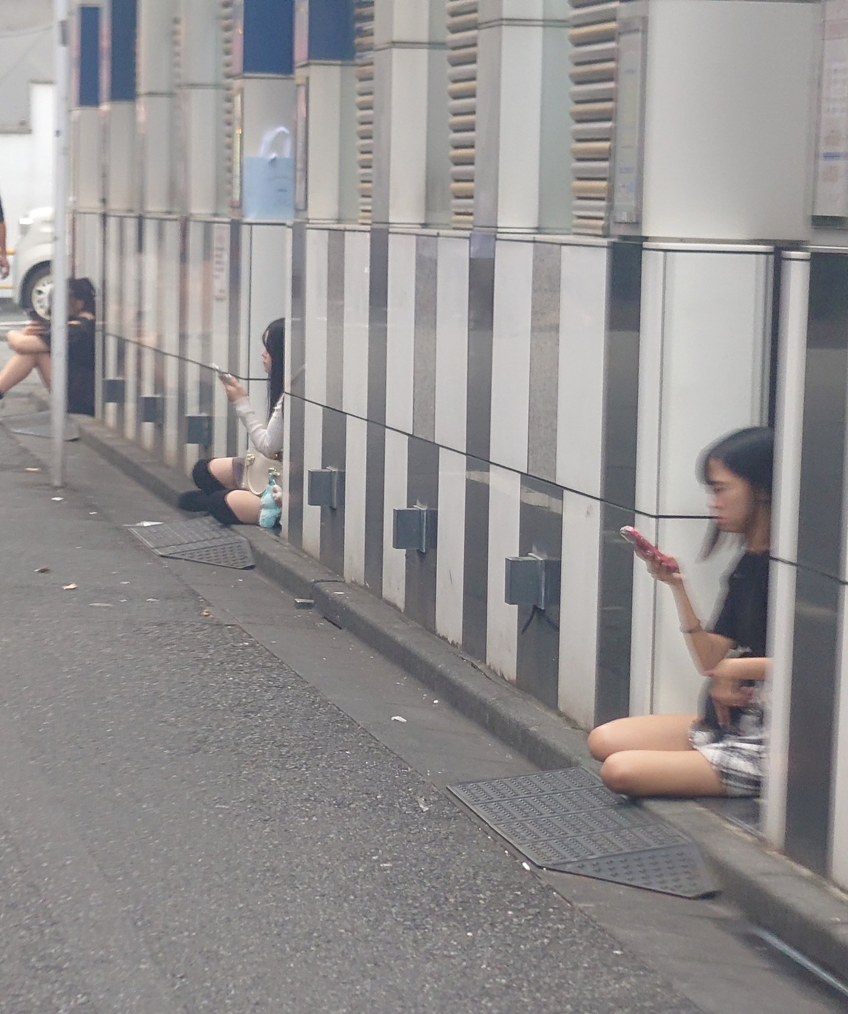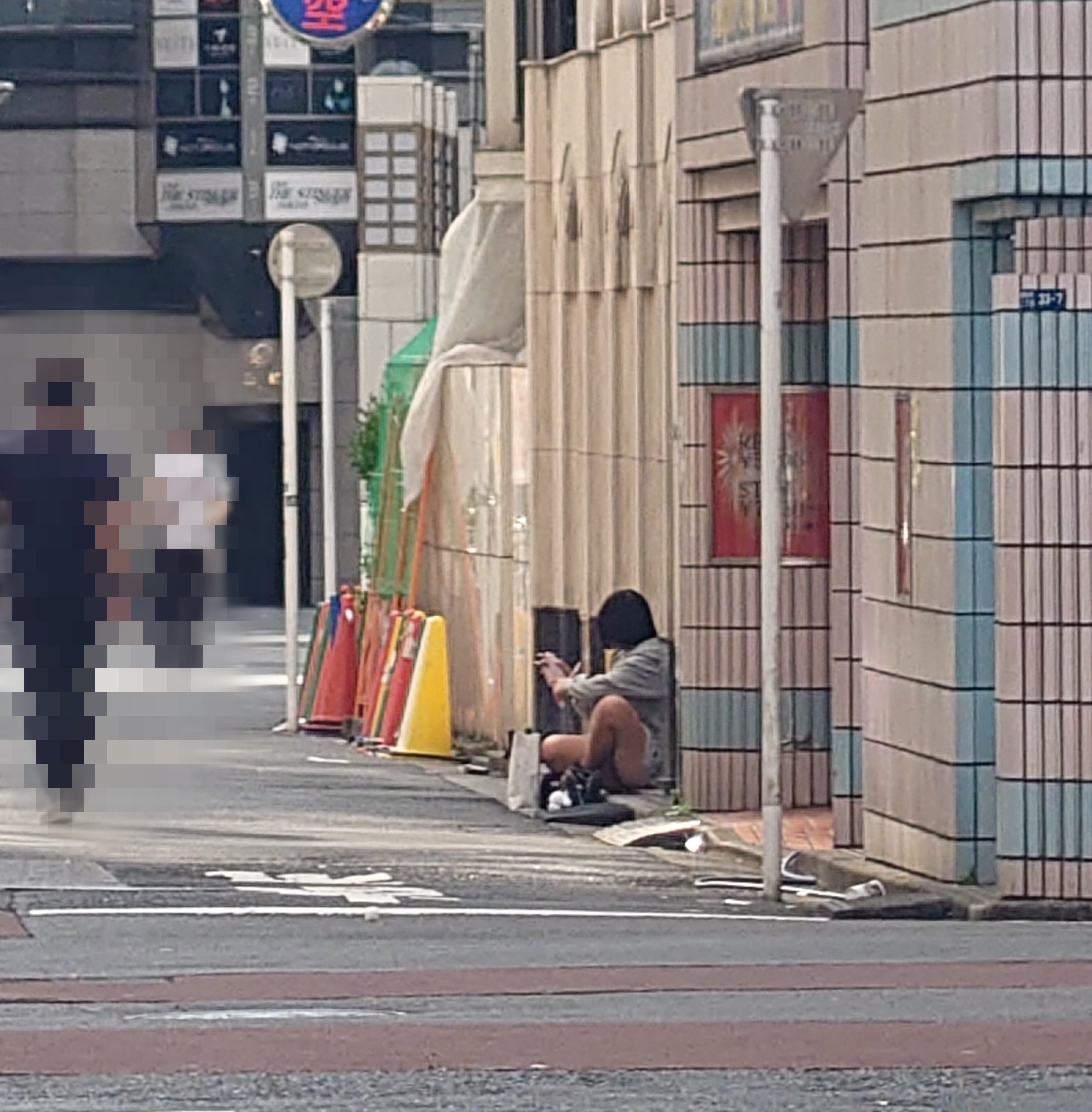 日本新宿歌舞伎町的賣淫妹,以飯店旁的大樓空隙處當成據點坐著攬客,讓日本網友酸像坐在室內的遊廓一般。