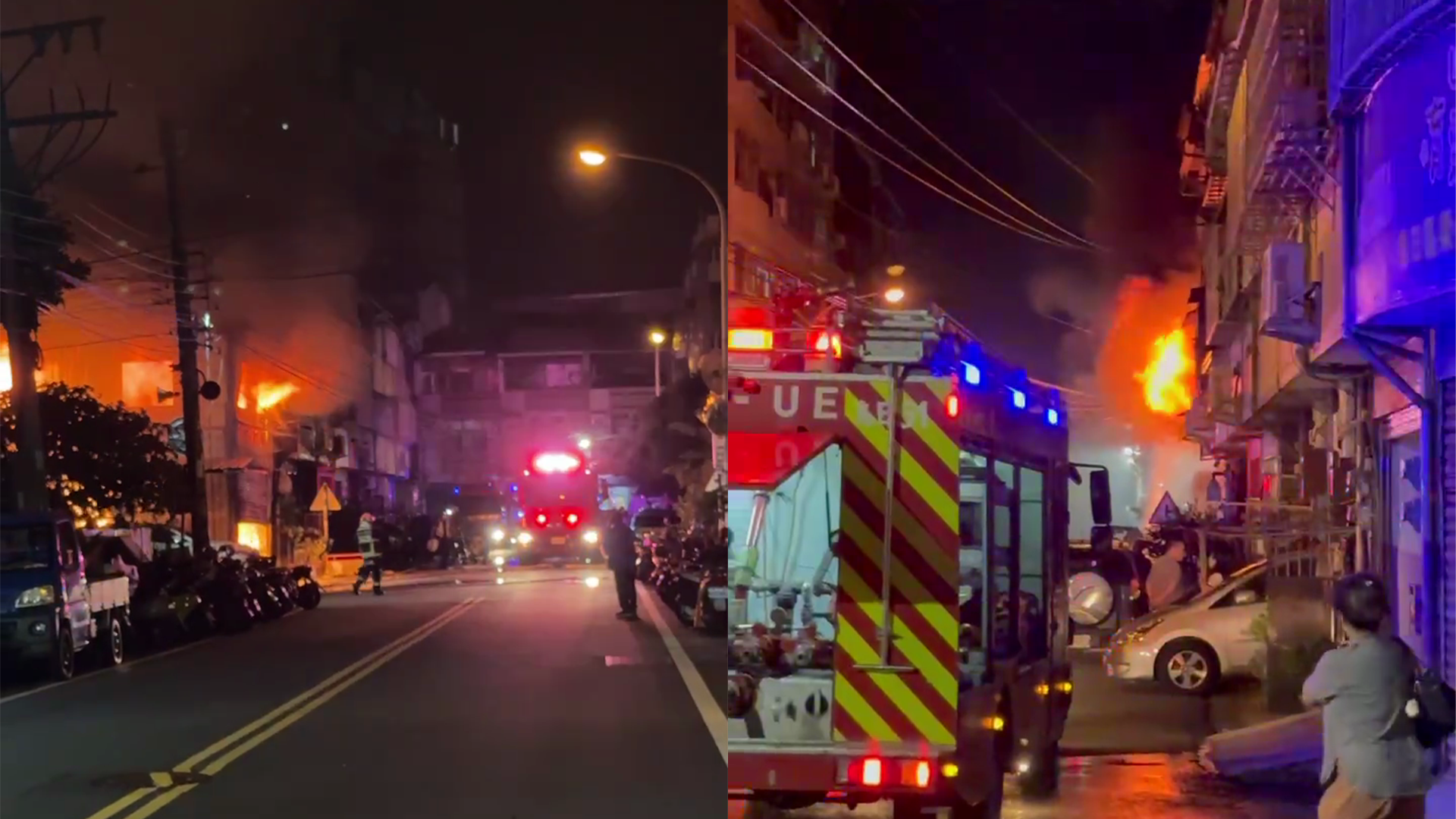 ▲台中烏日洗衣店火警!火舌竄出…居民驚逃 消防涉水搶救(圖/翻攝畫面,下同)