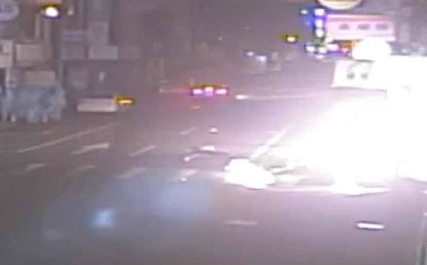 機車遭撞擊後起火燒毀。翻攝畫面
