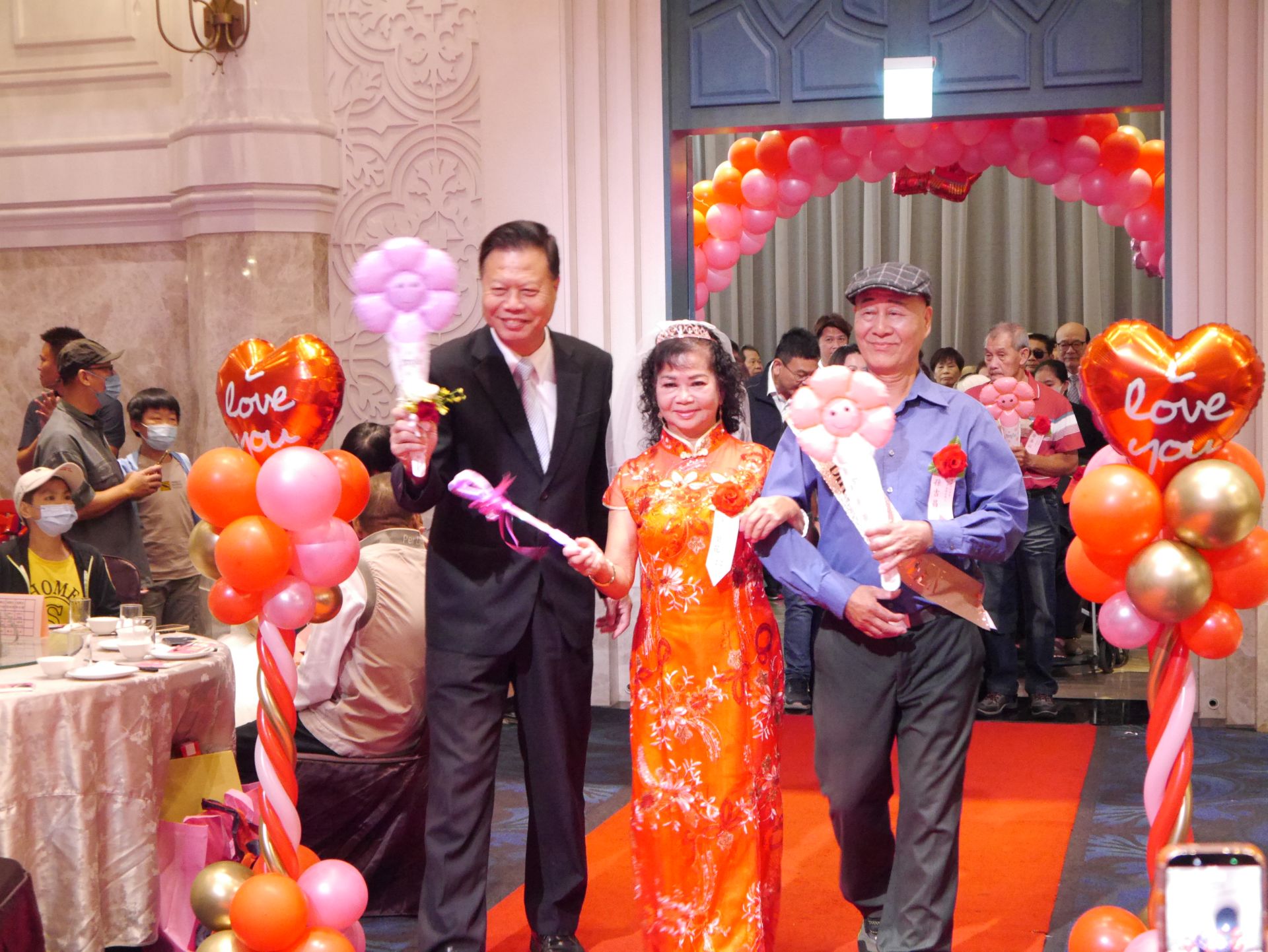 賴致富市長表示,今年共有白金婚(70年)6對、鑽石婚(60年)78對、金婚(50年)342對。他說,在人生的長河中,能與伴侶相知相惜五十年、六十年、甚至七十年,實屬難能可貴。」各位長輩不僅是家庭的楷模,更是社會的典範,以「愛與包容」守護家庭,以「智慧與毅力」教養子女,讓家庭溫馨長存、感情歷久彌新。