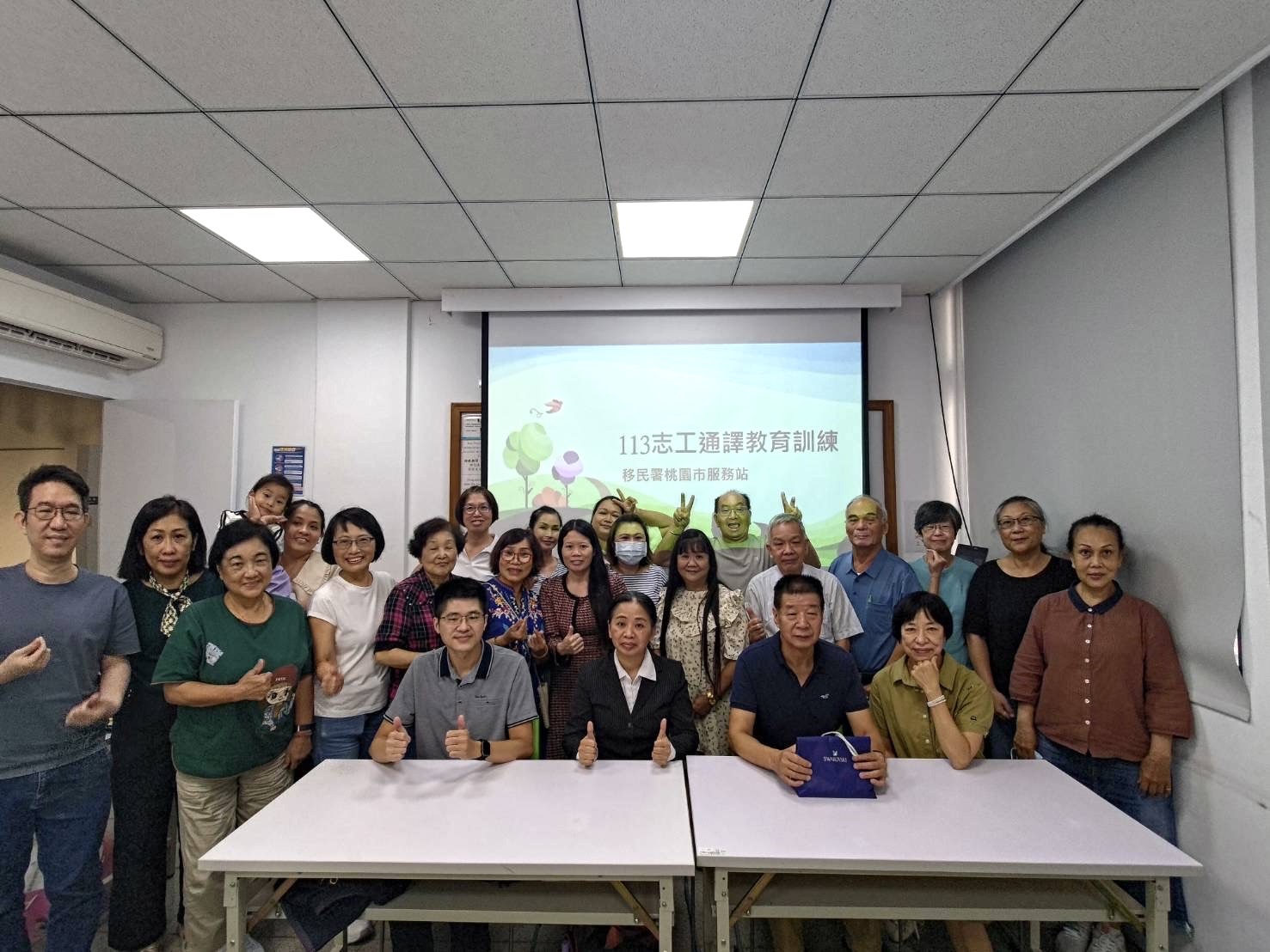 為精進志工與通譯人員服務知能與品質,提供民眾更好的服務,移民署北區事務大隊桃園市服務站日前舉辦「113年度志工及通譯教育訓練暨優良志工表揚活動」,安排一系列的研習課程,除了有最新居停留法令的課程,也特別邀請桃園市志願服務中心講師黃俊維、錦興國小營養師莊宇晴,分別講授「溝通與協調技巧」、「健康飲食與疾病預防」。活動中並公開表揚112年度優良志工喬珠珠及徐惠美,以及感謝其他志工及通譯人員的奉獻及熱忱服務。