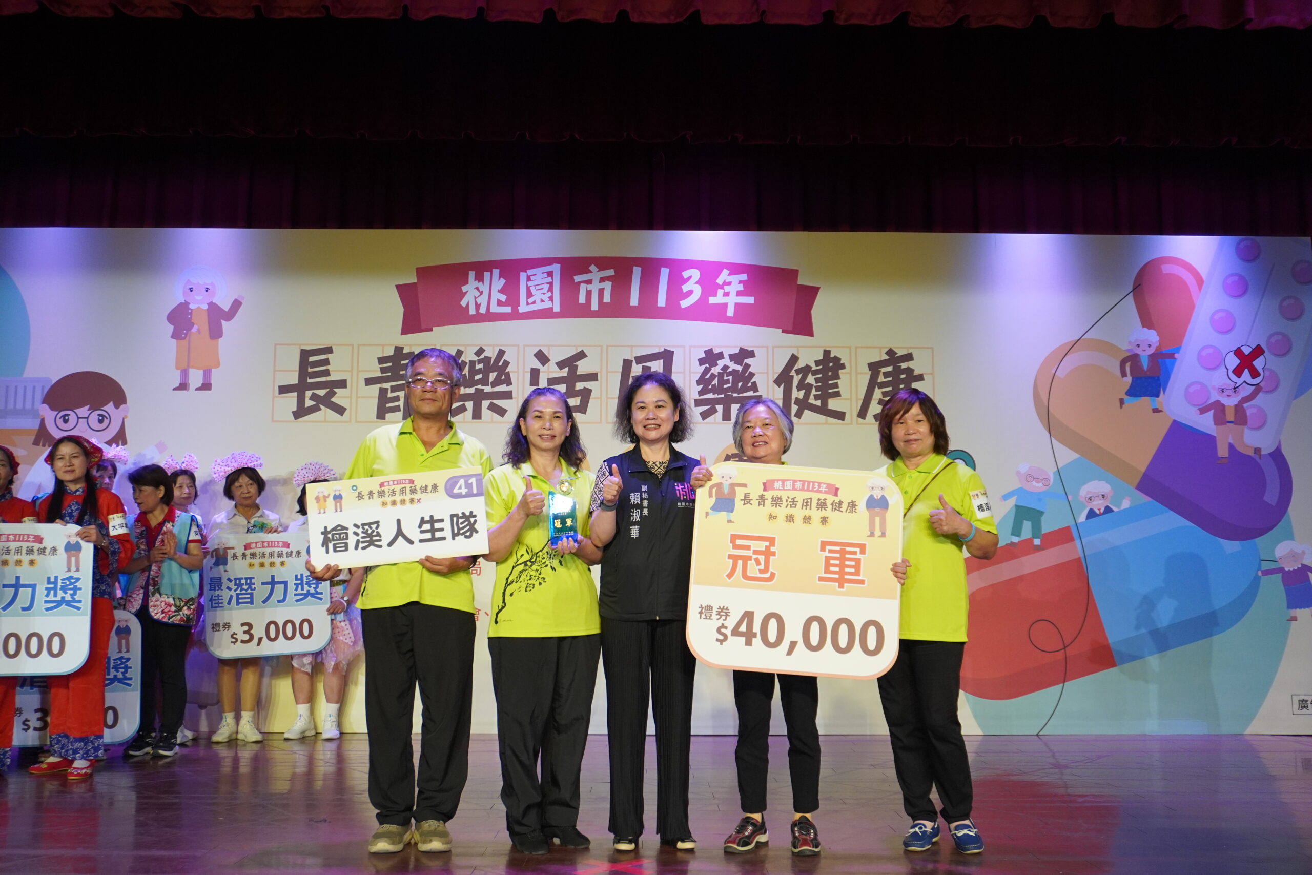 本活動為桃園市「113年度樂活重陽季」年度盛事之一,為將用藥安全及健康相關觀念融入長輩生活中,競答題目以用藥安全為主軸,擴及食品衛生、健康促進等相關衛生教育。競賽第1名至第3名優勝隊伍,皆可獲得優渥禮券及獎座,另外為了鼓勵長者們展現活力與創意,也設有7隊造型獎,將整體造型、用藥主題相關角色表現和團隊合作等項目納入評審,以激勵長者們發揮創意盡情享受活動,營造健康活力的樂齡氛圍。本次活動有63支隊伍參加,共計300多人,參賽者中超過80歲的長者有14人,最年長的長者為86歲,充分展現桃園市銀髮族活到老學到老的精神。