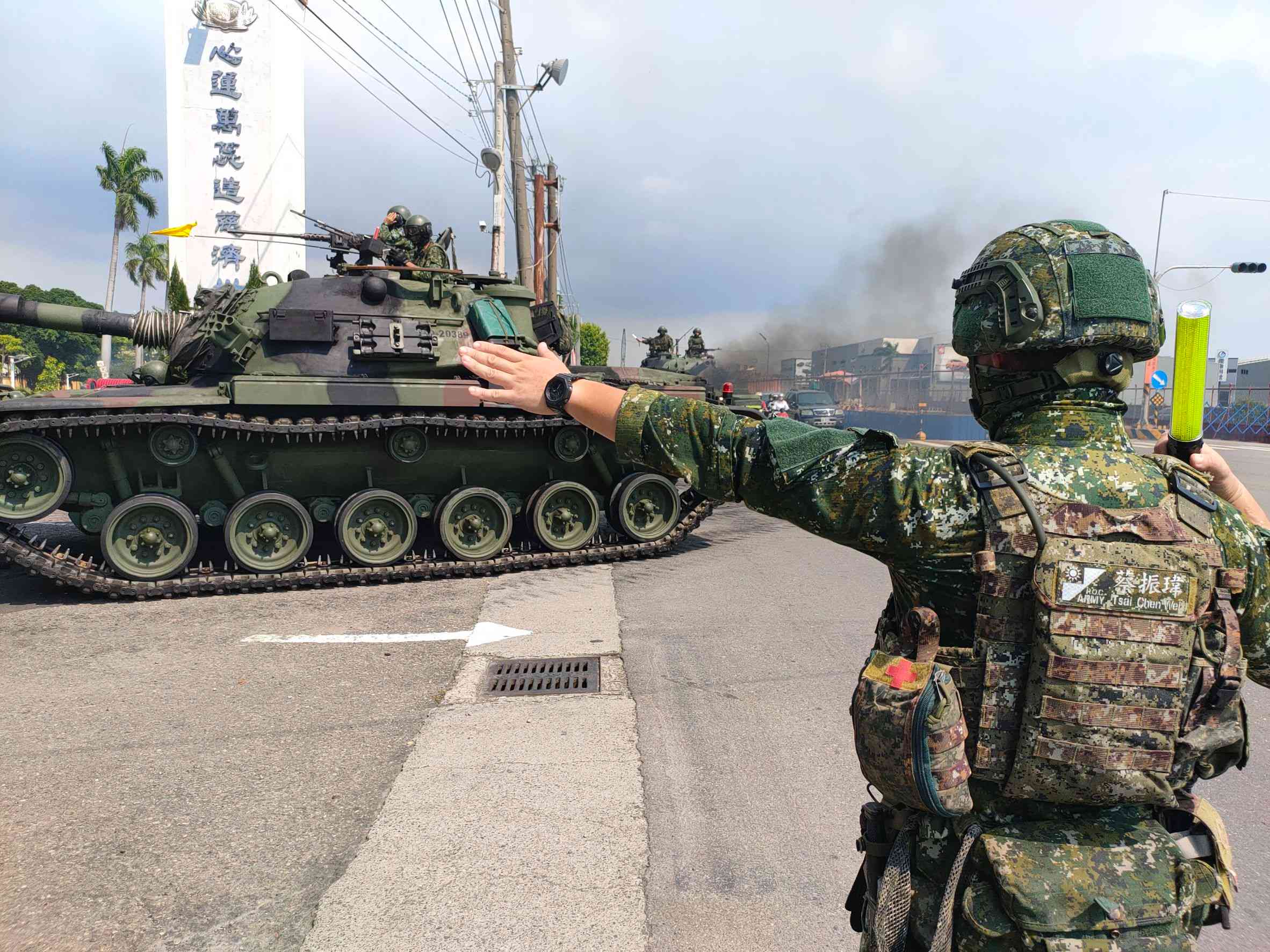 指令下達後營區內CM-11戰車、CM-32八輪甲車、M-113裝甲運兵車、拖式飛彈車等主戰裝備立即出發,經過岡山區市區道路,浩浩蕩蕩的戰車車隊發出巨大的引擎聲非常顯眼,許多路旁的民眾也通通跑出來觀看這難得景象,並雙手比讚向辛苦的國軍加油打氣,整個車隊最後進入預定的防空疏散位置,進一步強化戰力保存的效果。