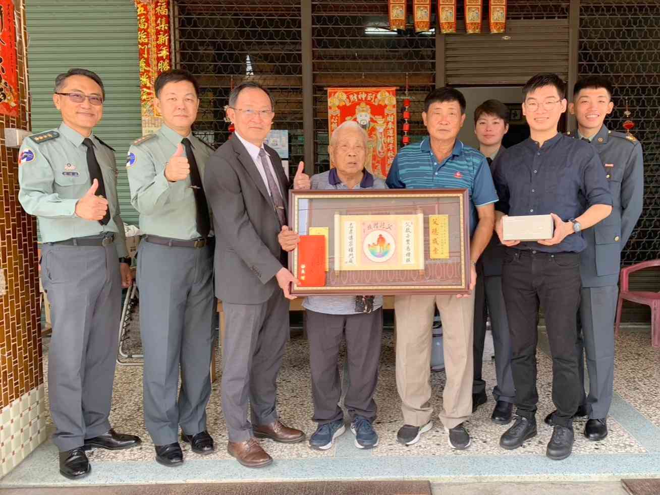 ▲軍備局副局長王德本(左3)代表國防部長顧立雄向模範父親蔡文展表達祝賀。(圖/記者莊全成攝)