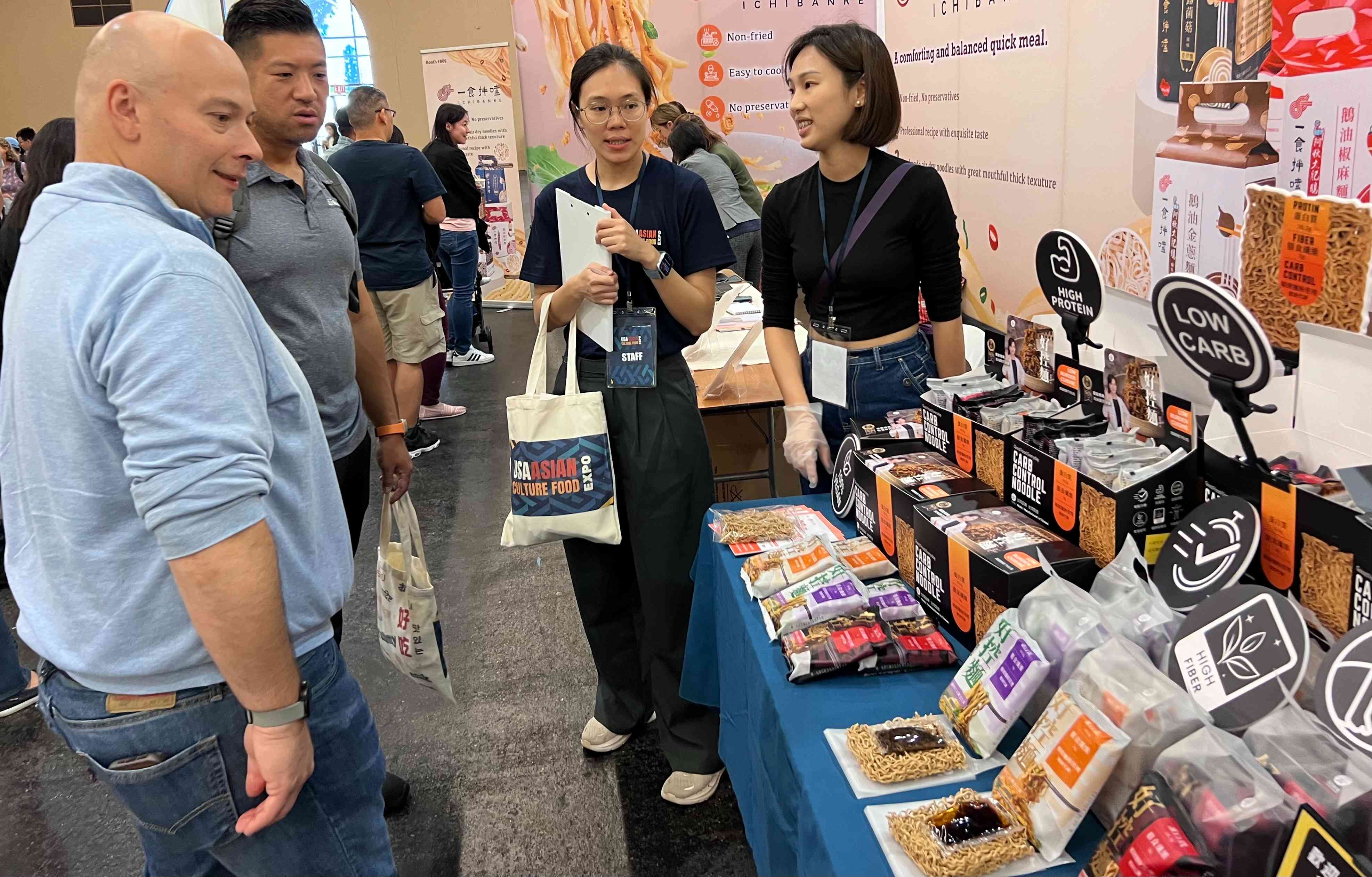 近日,日日好食推出新型態捲麵,受邀赴美參加舊金山灣區食品展,該區位於北加州,靠近史丹福大學,是許多知名科技新創的大本營,結果大排長龍,大家都想知道「protein noodles」的味道。驗證素食、蛋白質、膳食纖維等訴求,相當符合美國科技新貴需求。圖/日日好食提供