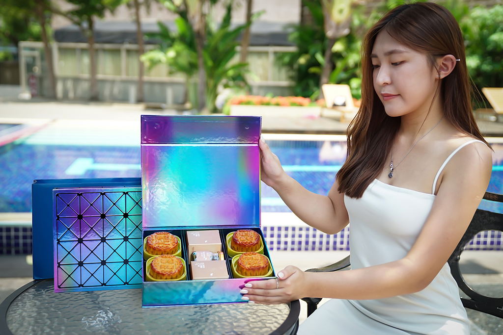 台中福華飯店每年推出的中秋禮盒總是引發搶購熱潮,今年的「絢月」中秋禮盒,設計靈感源自於光影SHINING,以「絢」彩耀眼、「月」光乍現為主題,禮盒內含四款經典廣式月餅:伍仁雜糧、松茸滷肉、蓮蓉蛋黃、棗泥桂圓枸杞,搭配三入雪蛤燕窩飲,傳統與現代的巧妙結合。不僅如此,禮盒的包裝設計也極具特色,以光影效果打造,展現出絢麗奪目的外觀,讓中秋送禮更顯品味與心意。