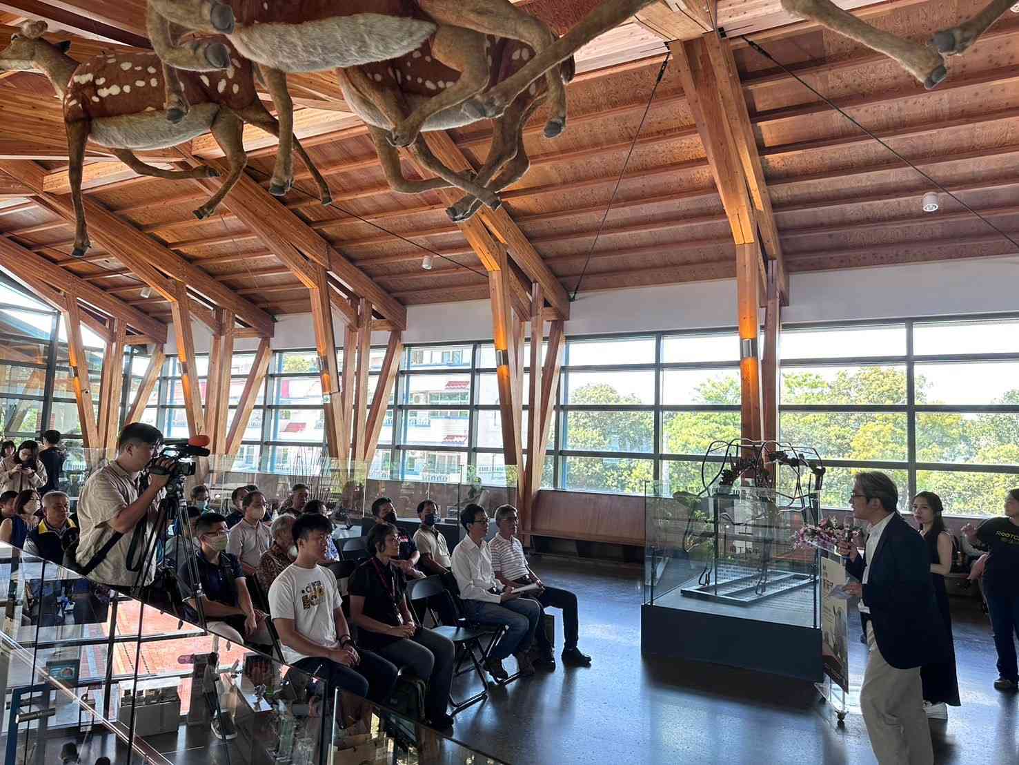 臺南左鎮化石園區「臺灣古生物新犀望」特展,於上週六(6/29)日揭幕開展,該次特展展出由侯立仁先生所收藏的「犀牛上顎與臼齒」,是本次特展首度曝光的亮點展品。開幕儀式也邀請臺灣唯一化石小學──光榮實驗小學的孩童們,贈送親手彩繪的犀牛模型,充滿創意及色彩的作品,讓臺灣古生物化石研究見到無限的「犀」望曙光。該次開幕亦邀請臺灣知名古生物學家、國立自然科學博物館研究員楊子睿擔任貴賓及導覽者,因為自己出身於臺南淺山地區,對在地有著更為深厚的情感。包含臺南市文化局長謝仕淵、臺南市立博物館館長王世宏、光榮實驗小學校長蔡坤良等貴賓皆蒞臨出席,共同見證這場精心策劃的古生物之旅。