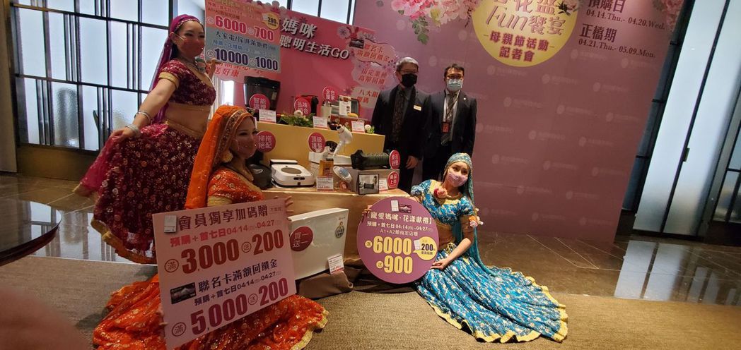 活動一開場由妤芊肚皮舞團,帶來熱力四射的印度舞表演揭開序幕,三位媽媽化身亮麗舞孃隨著音樂展現自信舞姿,將此次母親節檔期優惠陸續公開,預購及正檔期首七日消費滿6,000元送900元高現金回饋及200點會員點數,搭配滿額集心送、聯名卡回饋金及八大銀行加碼,盼締造新佳績。